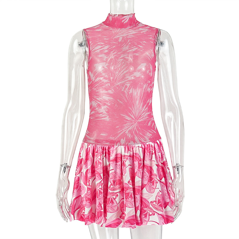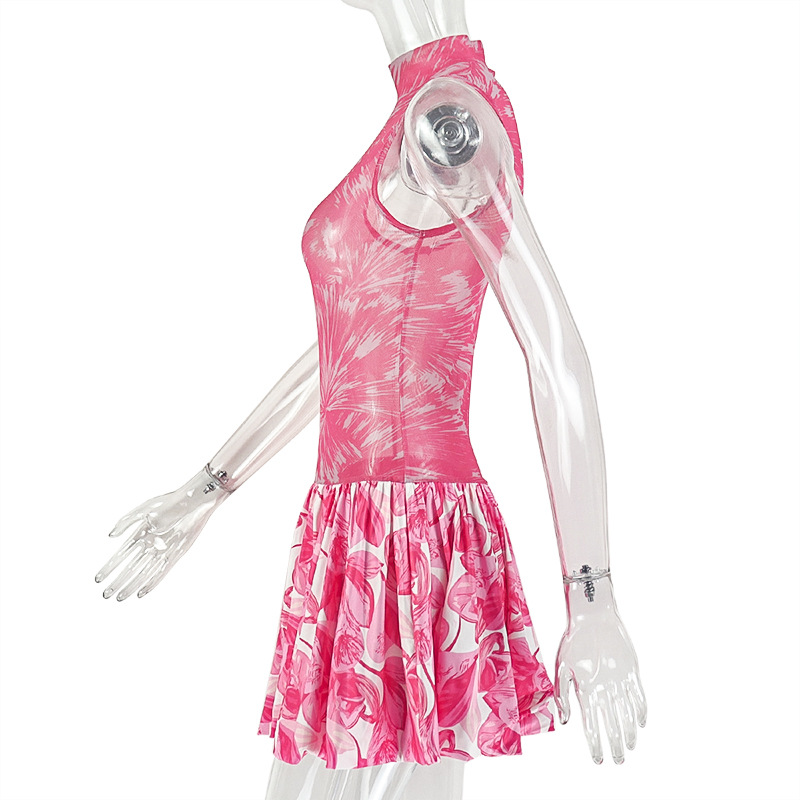 Womens Fashion Color-Block Printed Zip-Up Turtleneck Mini Dress